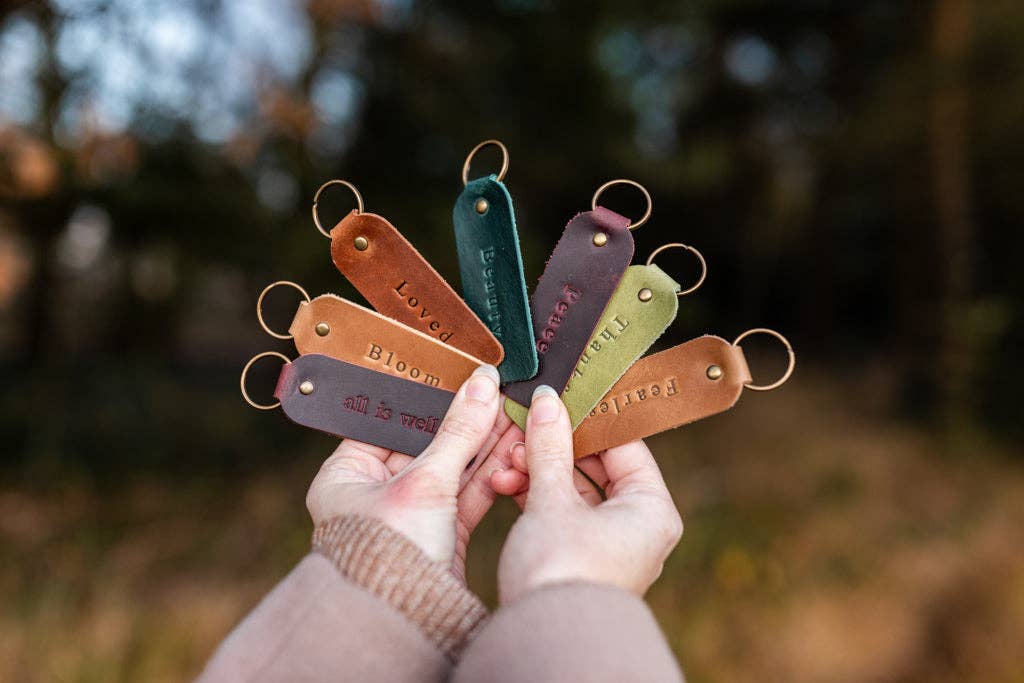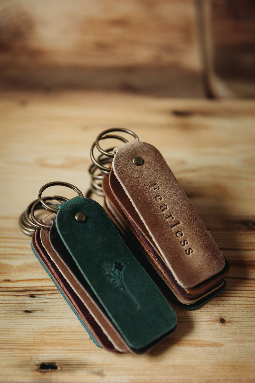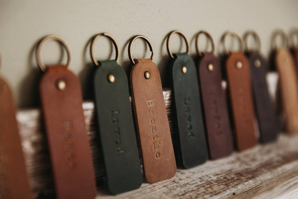 Elevate your everyday with our Leather Keyrings. Not only do they provide a stylish way to store and organize your keys, but they also offer a constant reminder of encouragement and inspiration. Each Keyring is meticulously handcrafted using top-quality leather, antique rings, and rivets for a truly premium product.