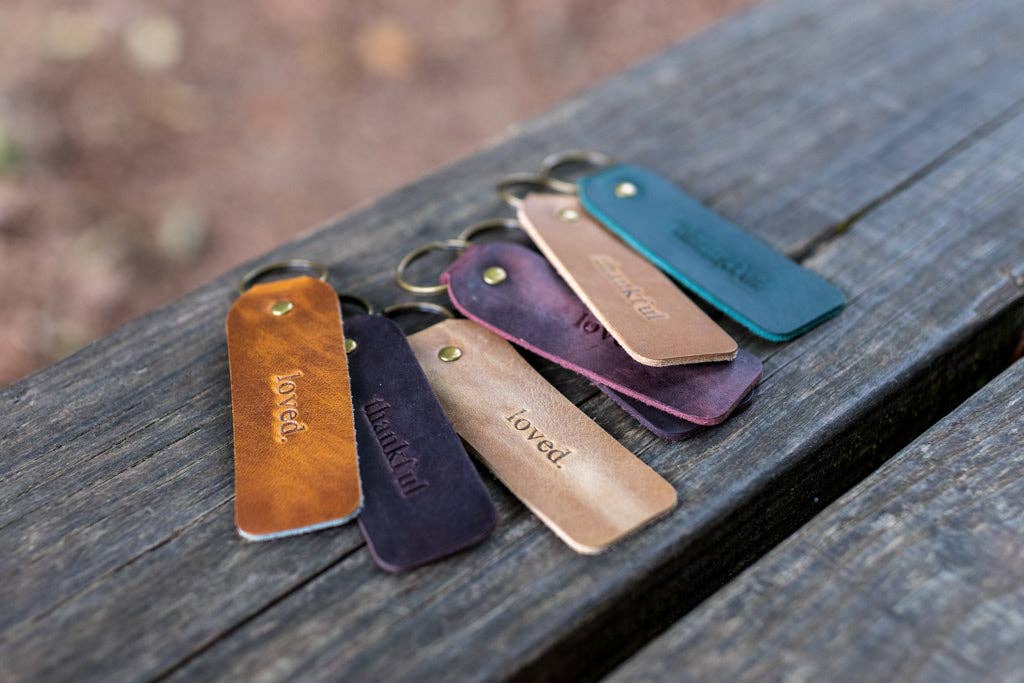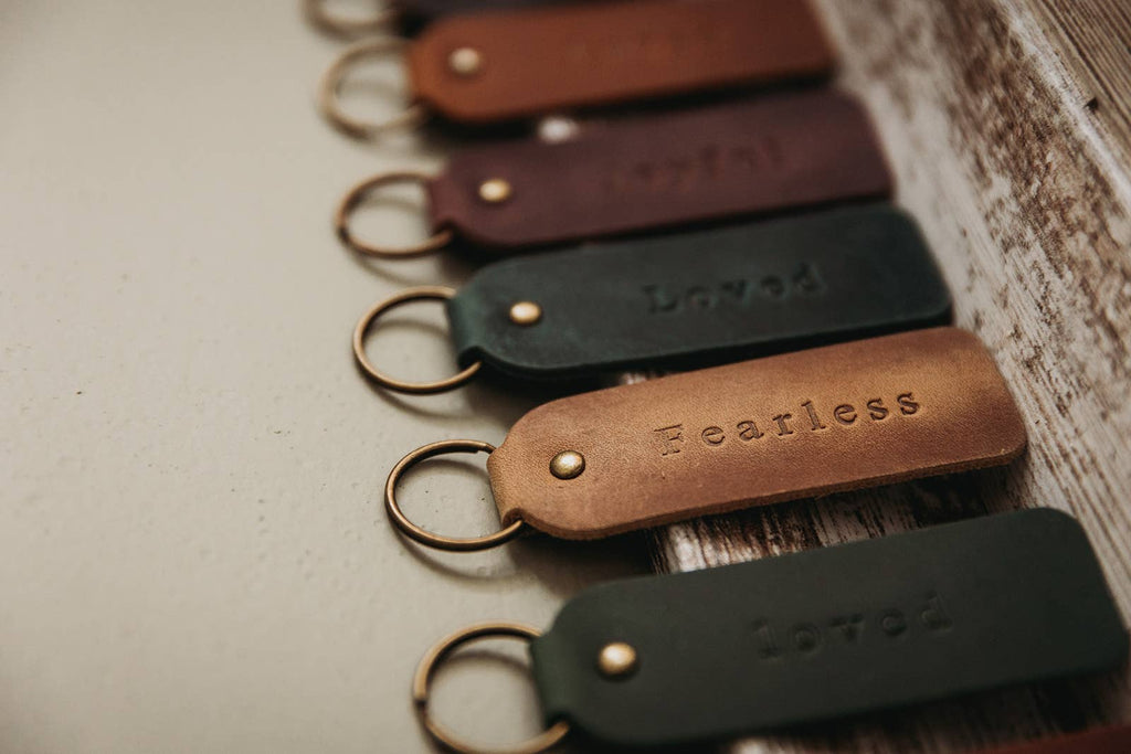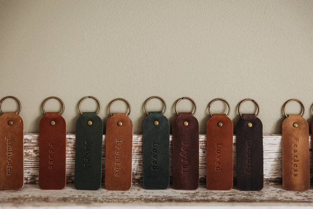 Handmade Leather 'Wise Words' Keyrings - Various Designs
